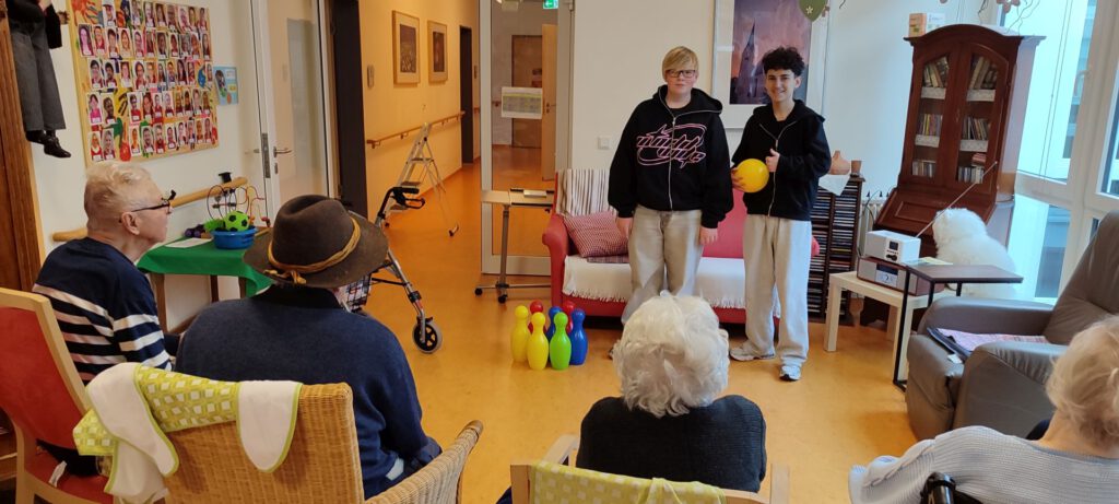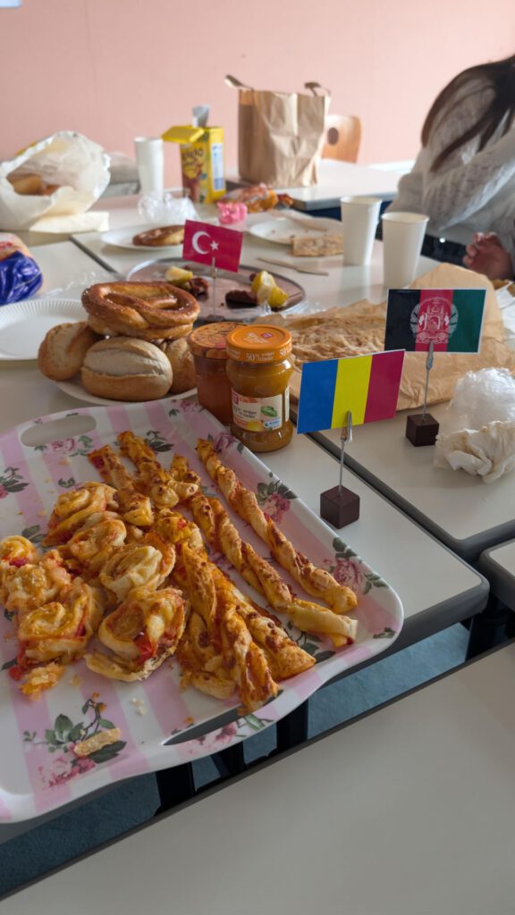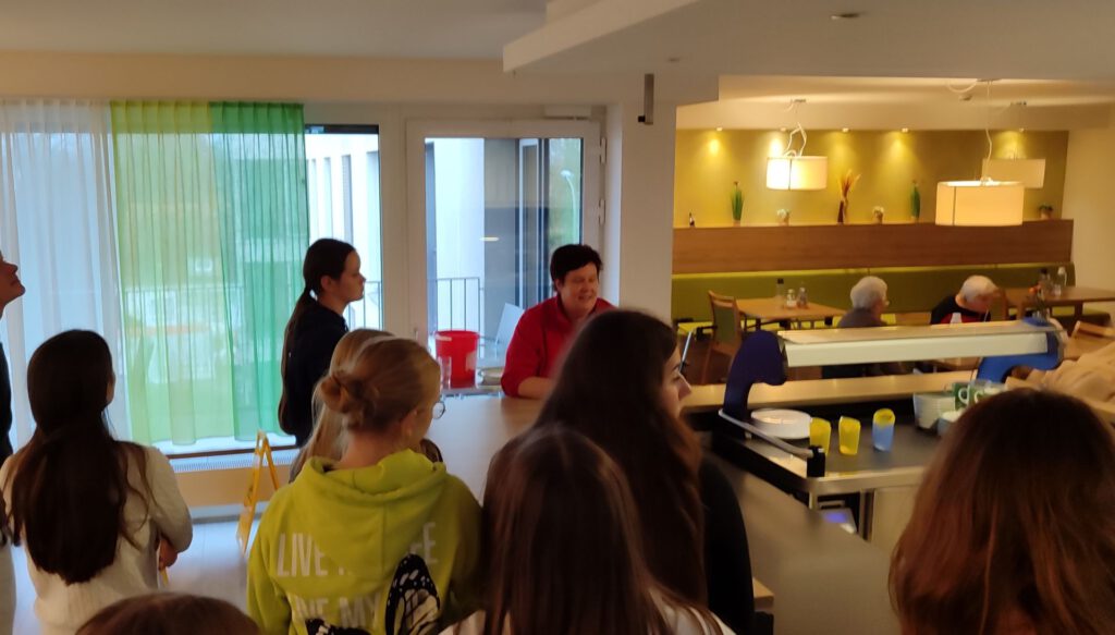 In sozialen Projekten wie dem gemeinsamen Frühstück im Schülercafé, Mitarbeit in der SMV oder dem schuleigenen Weltladen.